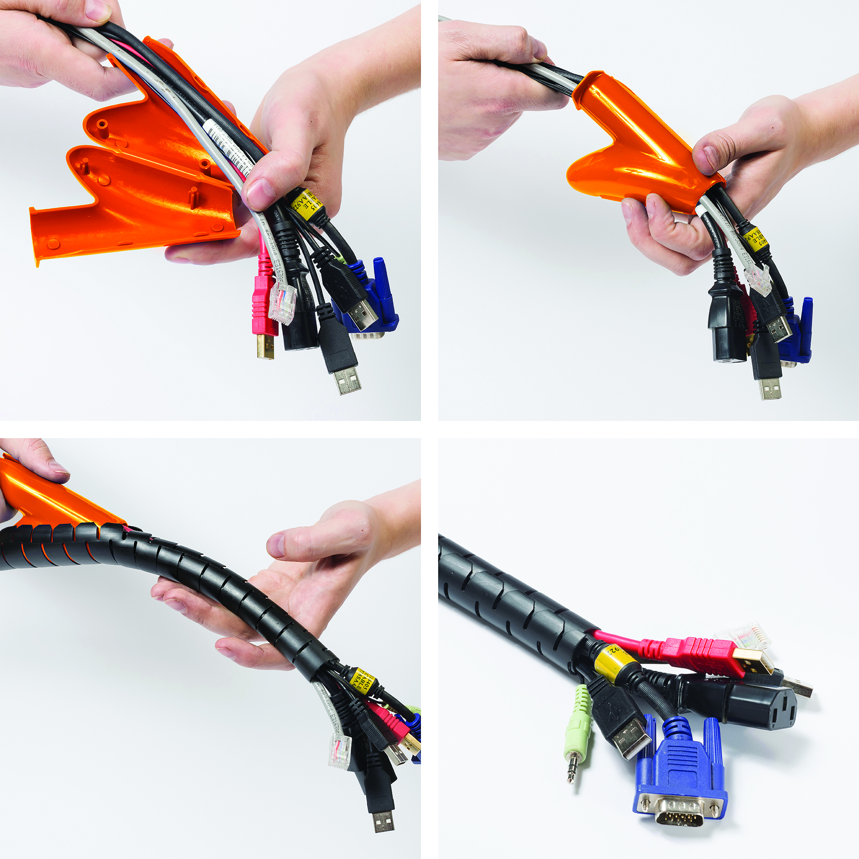 Simply place the cables in the zip tool, pull the zip tool down along the length of the Zipper. The cables then transfer from the tool into the length of the Zipper, providing a quick and easy way to neatly organise multiple cables. The cut-outs allow the length of the Zipper to bend to tight angles. Provides protection for cables. Can be cut to length with scissors. Good resistance to oils/lubricants, acids and alkalis, ideal for use around plant and machinery. Zip tool included in the pack. Operating temperature -30 degrees to +85 degrees.